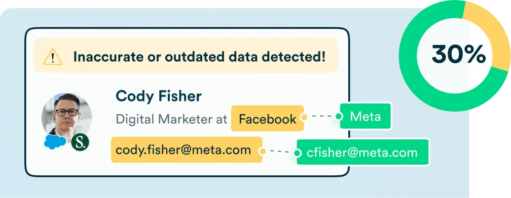 CRM databases naturally degrade up to 30% every year. According to the CDP institute, data decay accelerated during and after the pandemic. CRM data quality has been reported as one of the key challenges for effective prospecting and pipeline generation.