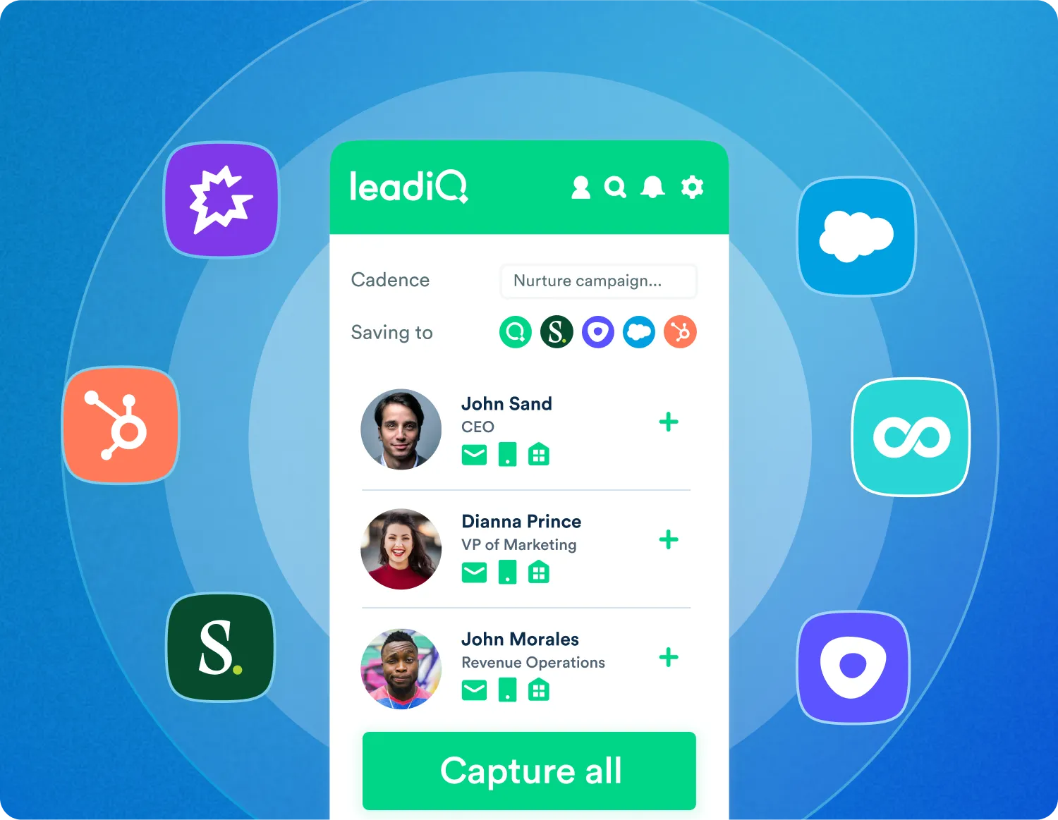 LeadIQ’s one-click prospecting workflow syncs contact data directly into your CRM and sales tech stack so sellers save time and achieve their pipeline goals.