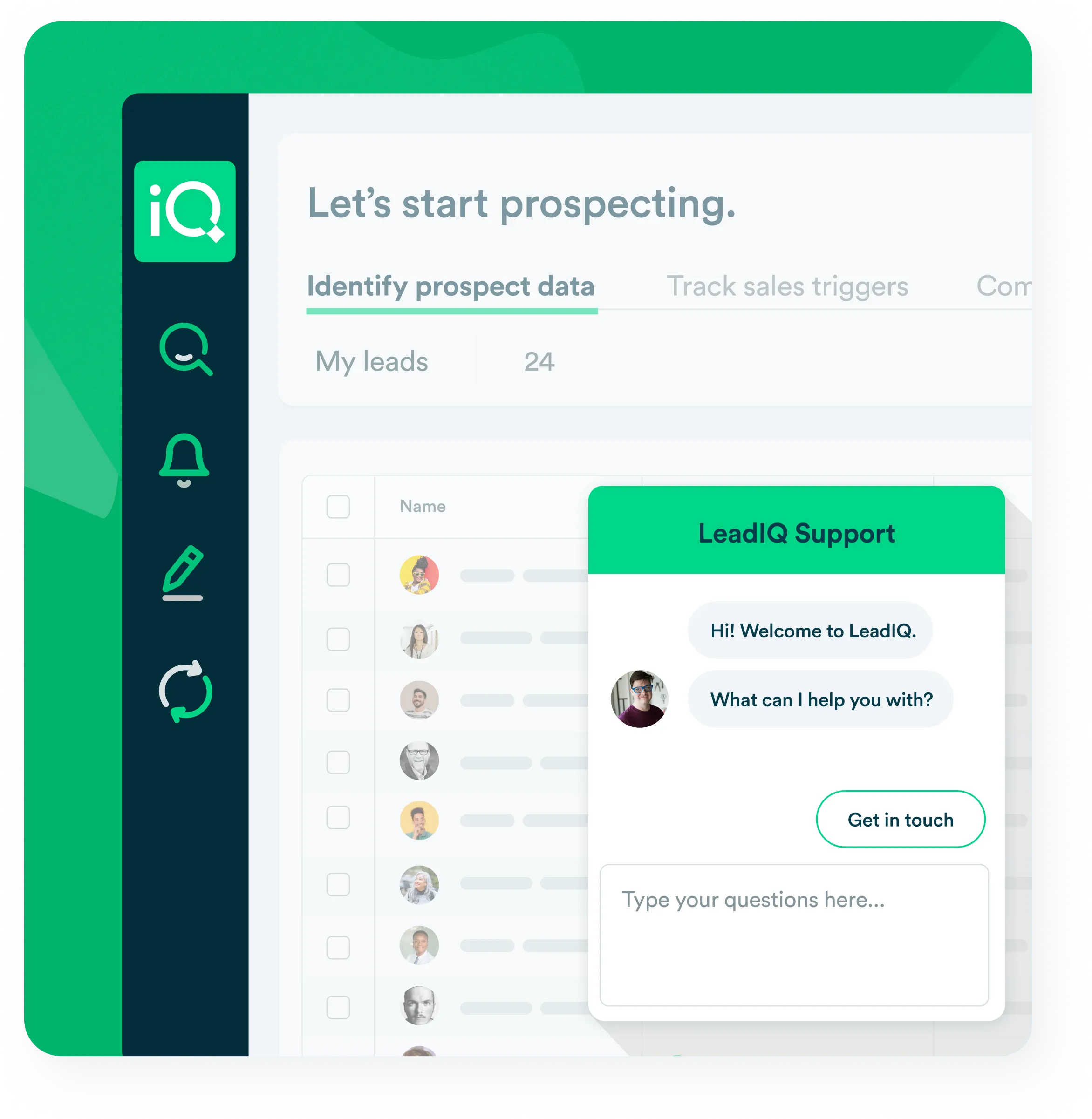 Find contact data, personalize cold outreach with AI, and track buying signals, all in the LeadIQ platform.