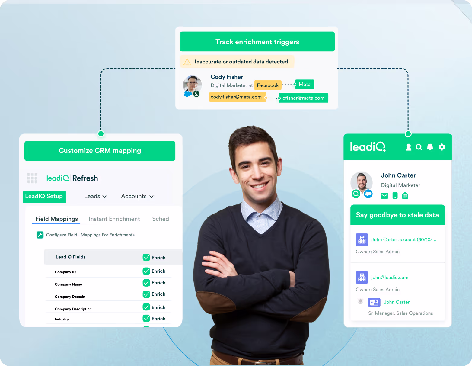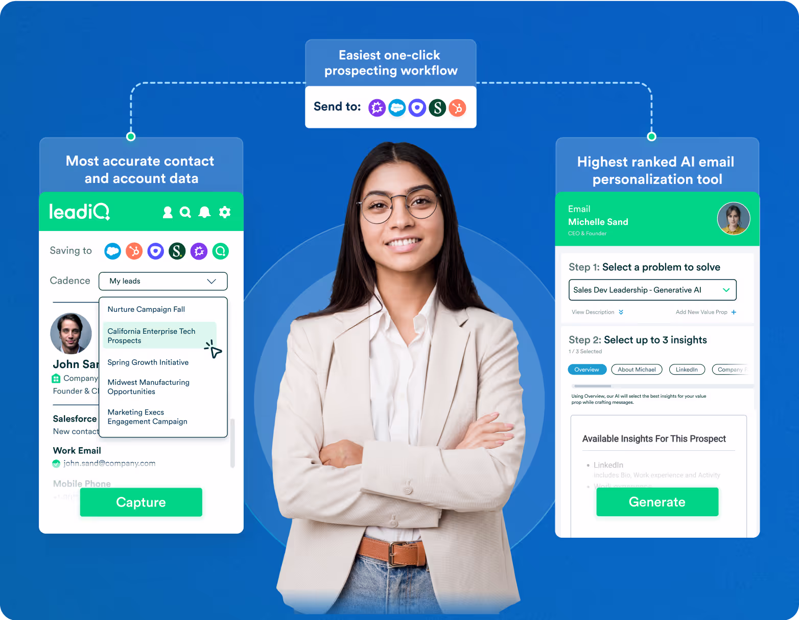 LeadIQ lets you add prospects from LinkedIn to your CRM and sequence them in one click. And all that data in your CRM? LeadIQ helps keep it squeaky clean so you always connect with the right people.