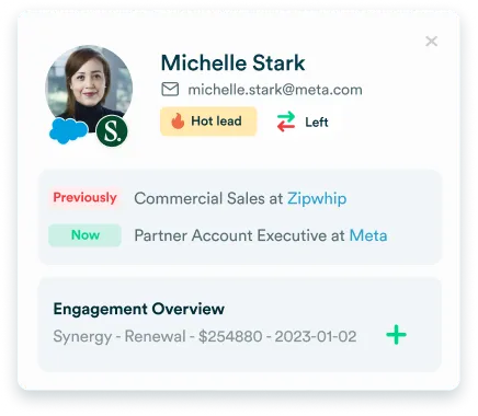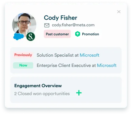 Get alerted every time a former customer changes jobs with their new contact data for faster outreach.