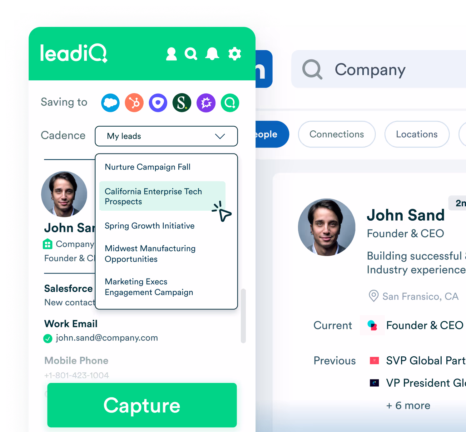 “LeadIQ’s LinkedIn integration makes it easy to find contact information quickly without switching back and forth between tabs.”