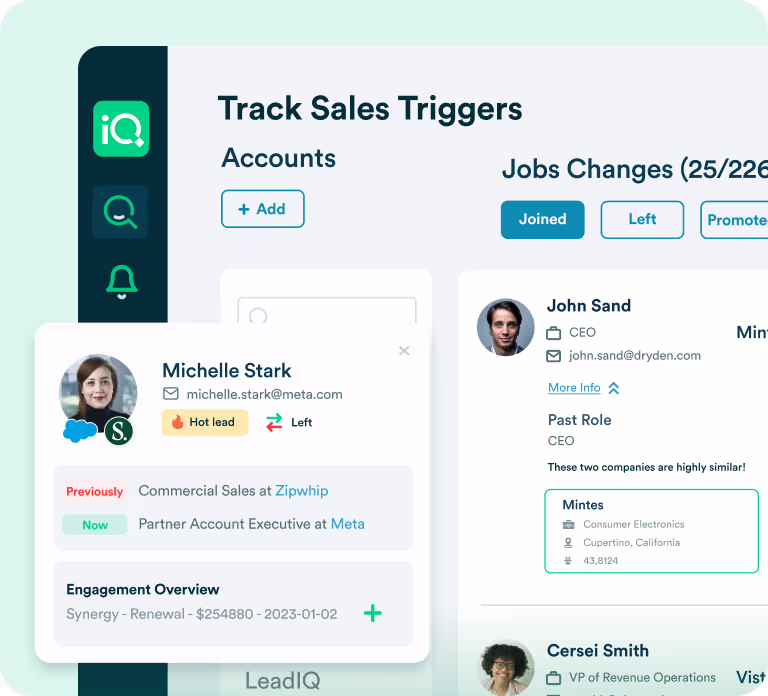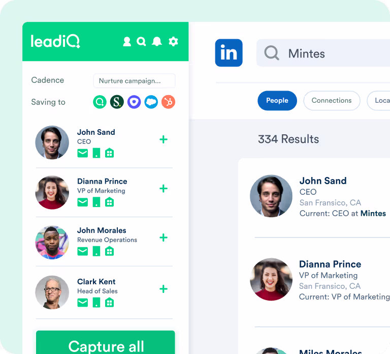 LeadIQ lets you add prospects from LinkedIn to your CRM and sequence them in one click. And all that data in your CRM? LeadIQ helps keep it squeaky clean so you always connect with the right people.