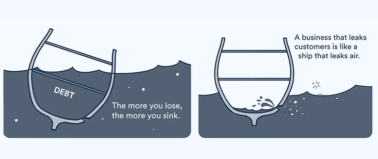 It's far better to stay buoyant by retaining customers. Current customers are famously 5 times less expensive to keep than new ones are to gain. Consequently, investment dollars last longer when you increase customer loyalty (you also get more referrals and cross-selling).
