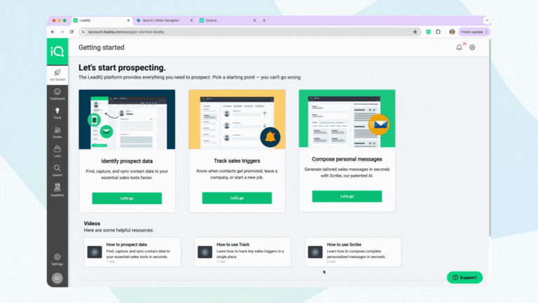 Of course, you can visit the LeadIQÂ Help Center for more detailed instructions on how to get started: Using LeadIQ with Groove.