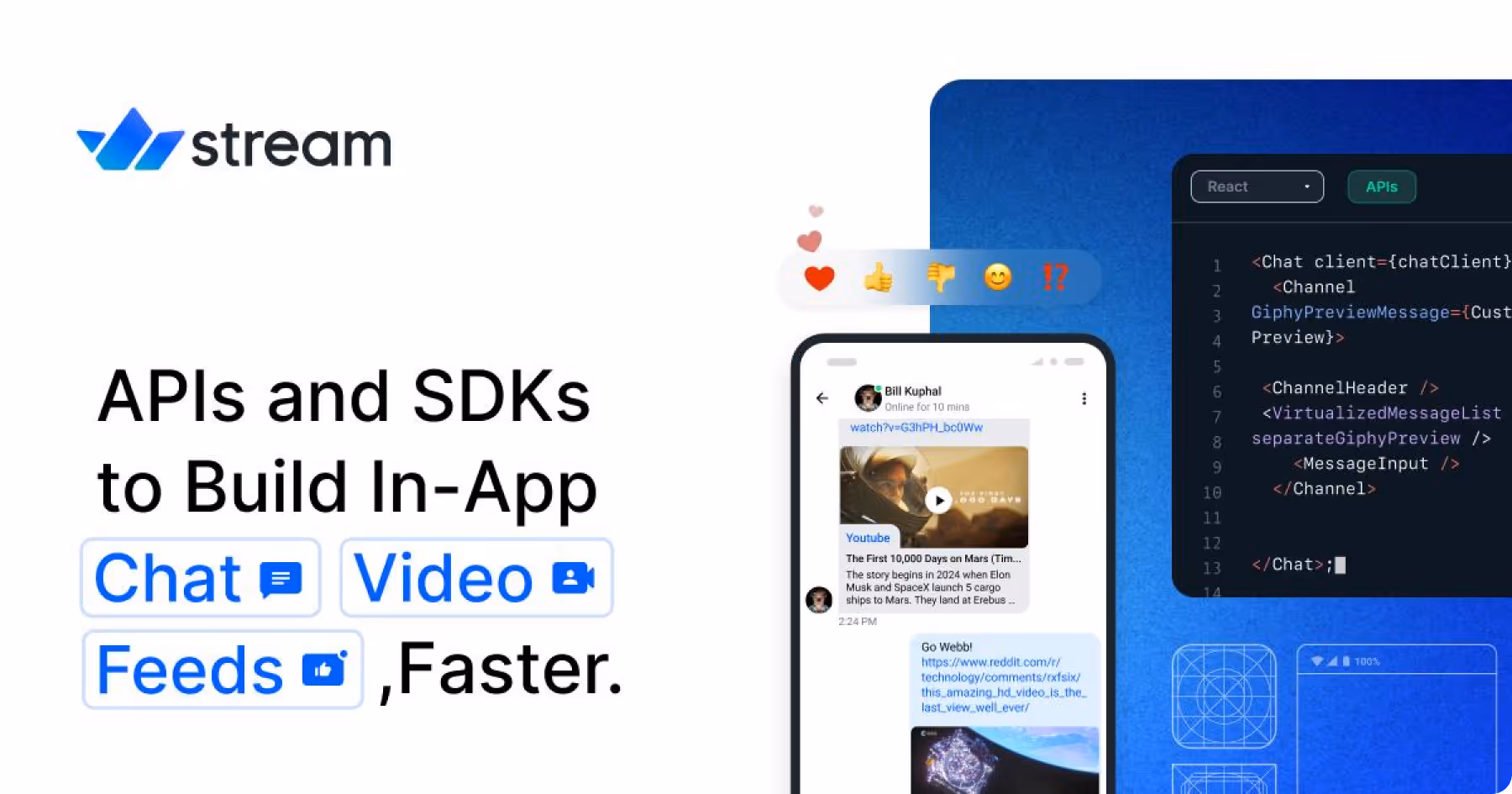 Stream provides industry-leading APIs and SDKs built by developers, for developers to help them engineer feature-rich activity feed, chat, moderation, video, and audio experiences for over a billion end users. Stream’s secure, scalable, and enterprise-grade platform empowers developers with the flexibility and scalability they need to easily build rich conversations and engaging communities.