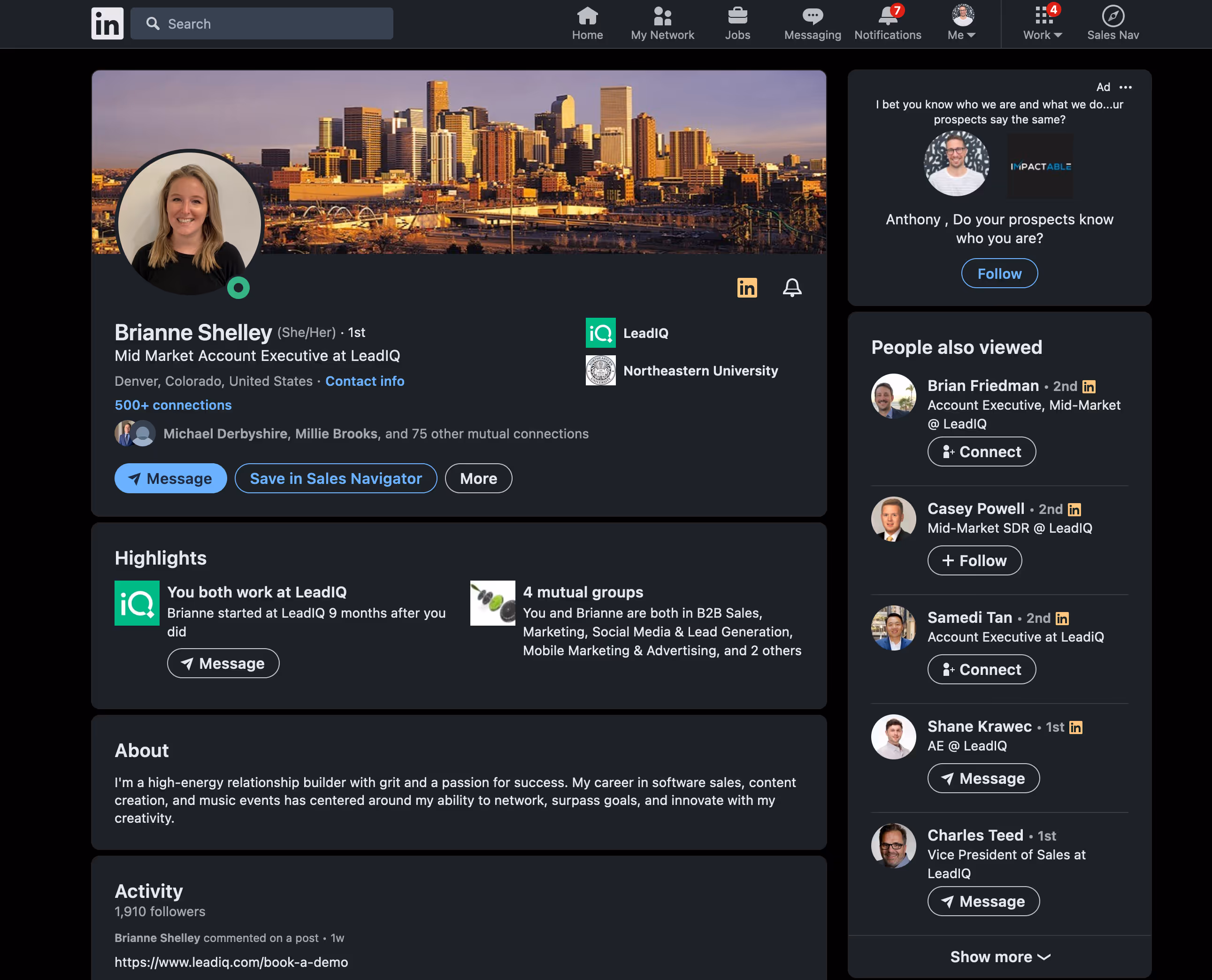 Having a public profile allows other people to find you and engage with your posts. Remember that every engagement is a chance to further a conversation. If a prospect looks at your profile, find a personalized way to reach out and start talking.